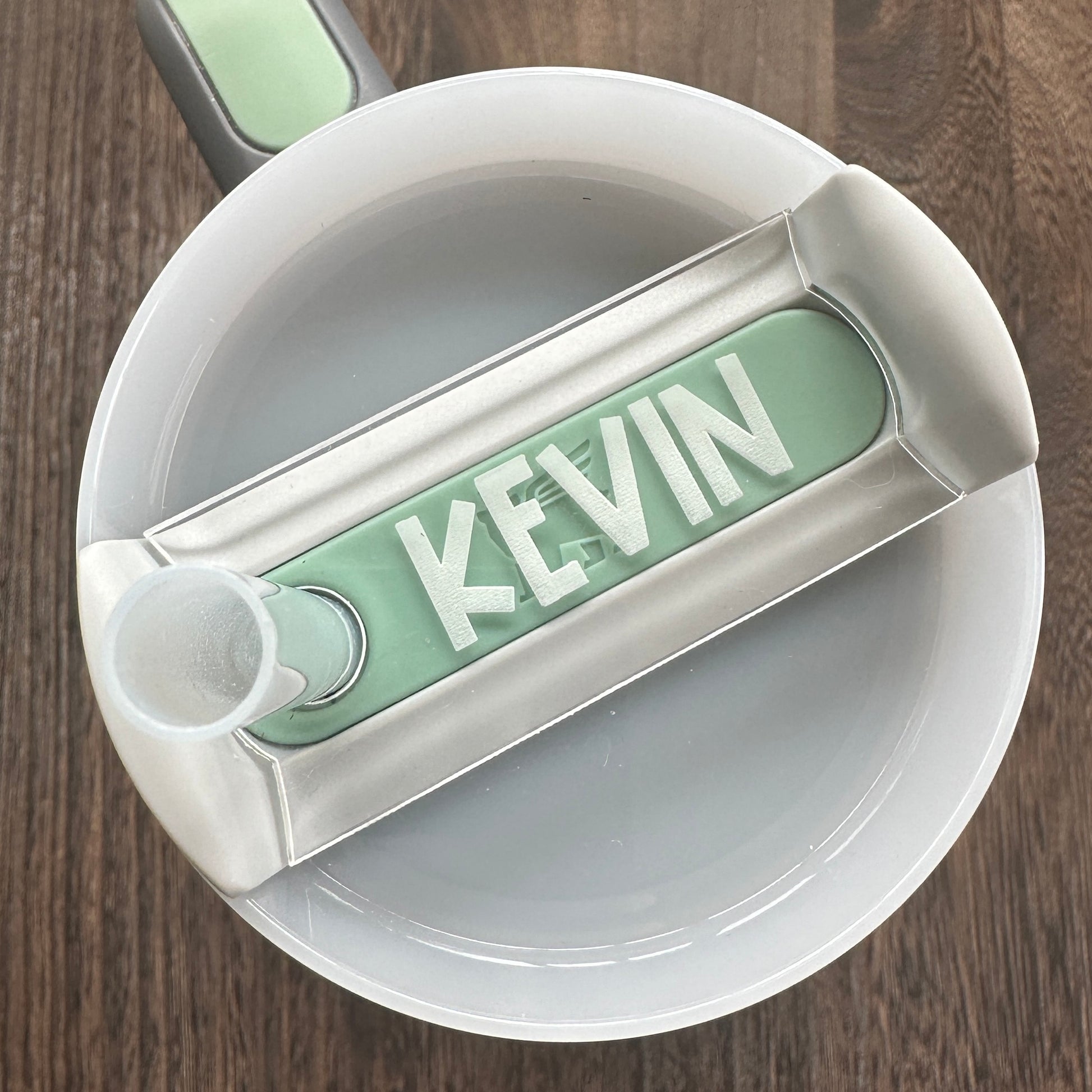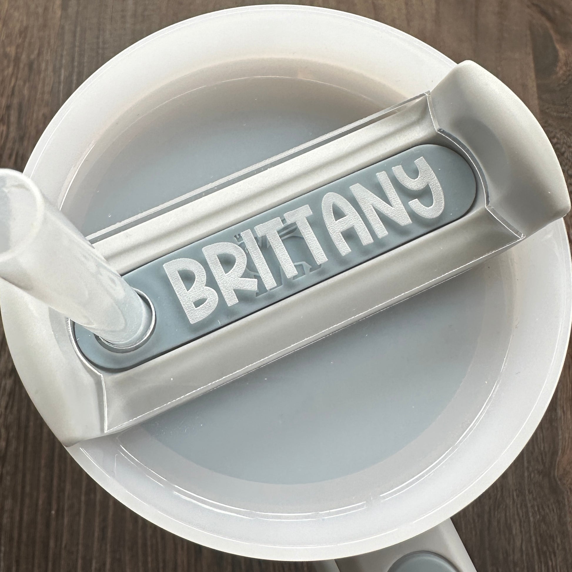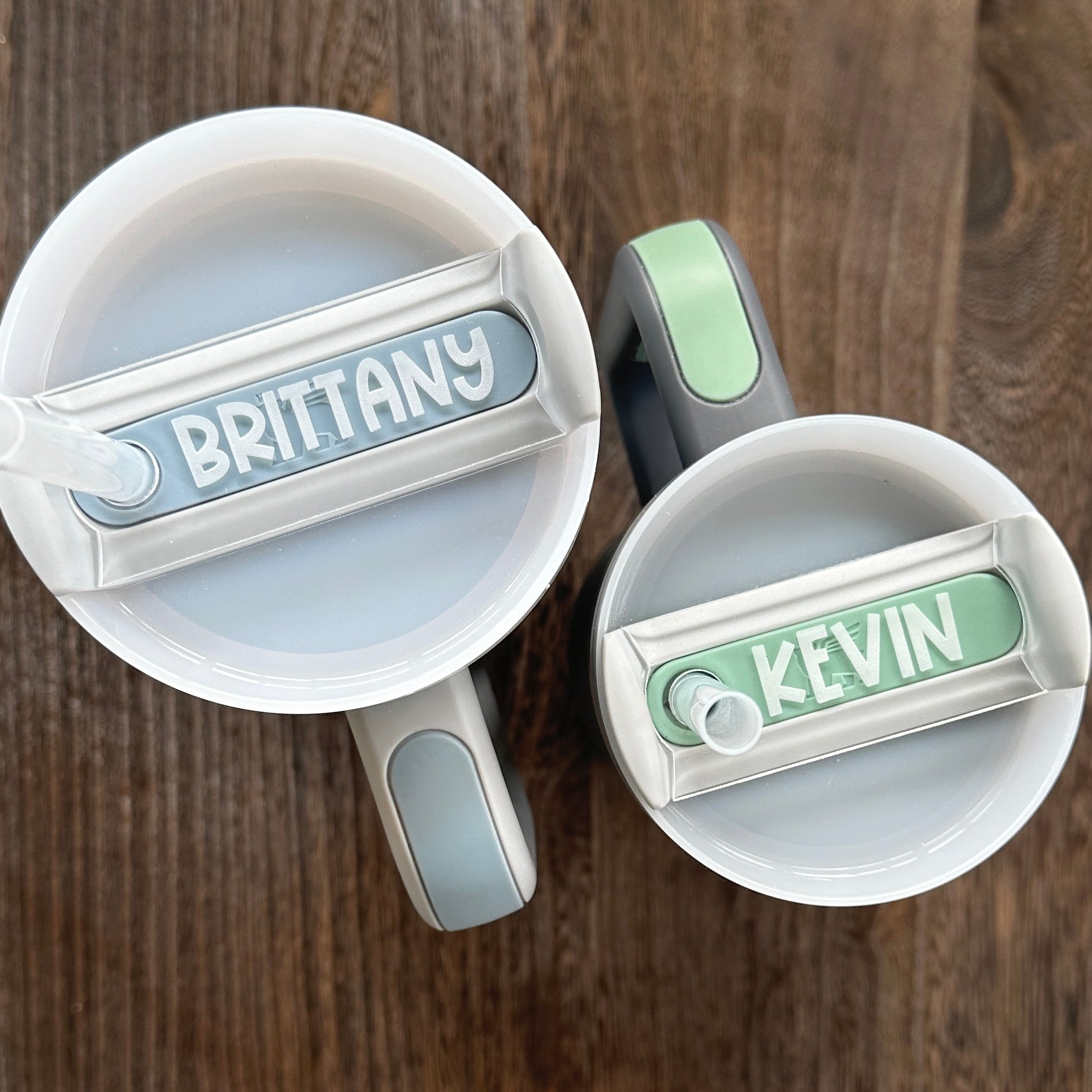 Your tumbler will stand out from the rest in busy spaces with this clear acrylic name engraved tumbler topper. The print-style font with bold letters of this design will compliment any tumbler's look. Compatible with the newest Stanley Quencher H2.0 lids, you'll always know which cup is yours!