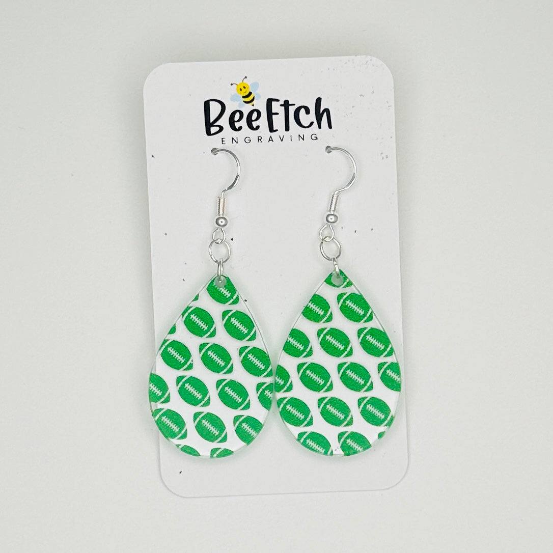 Kick off game day in style with our Football School Colors Katie Teardrop Dangle Earrings! Available in a variety of school colors, these earrings feature a fun teardrop design on clear acrylic. Show off your team spirit and represent your favorite team in a playful and quirky way. (Plus, you'll be scoring a fashion touchdown with these quirky football earrings!)