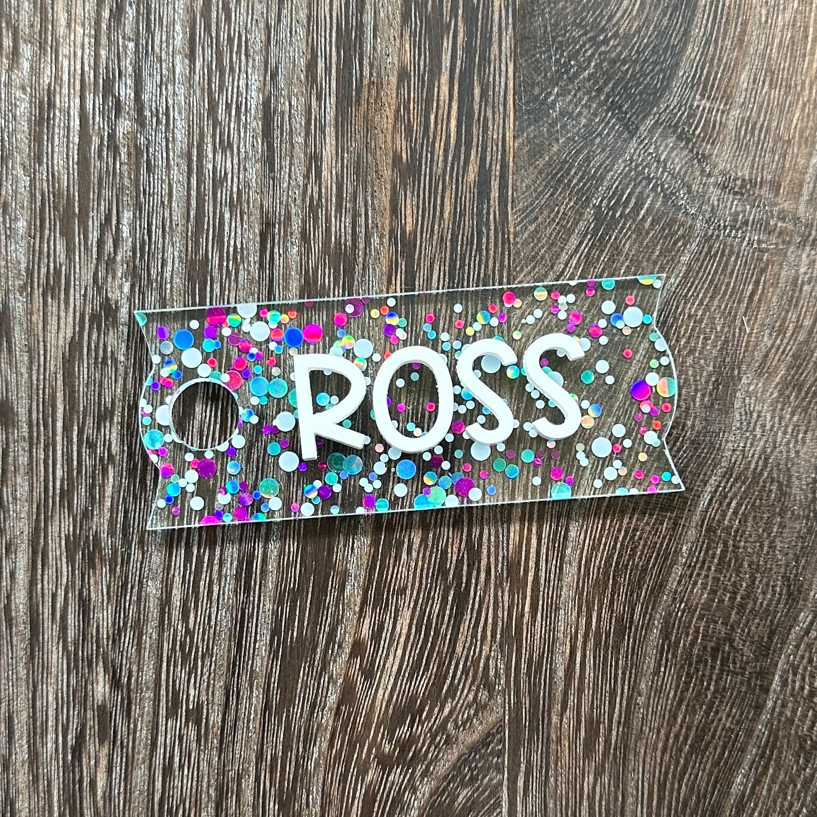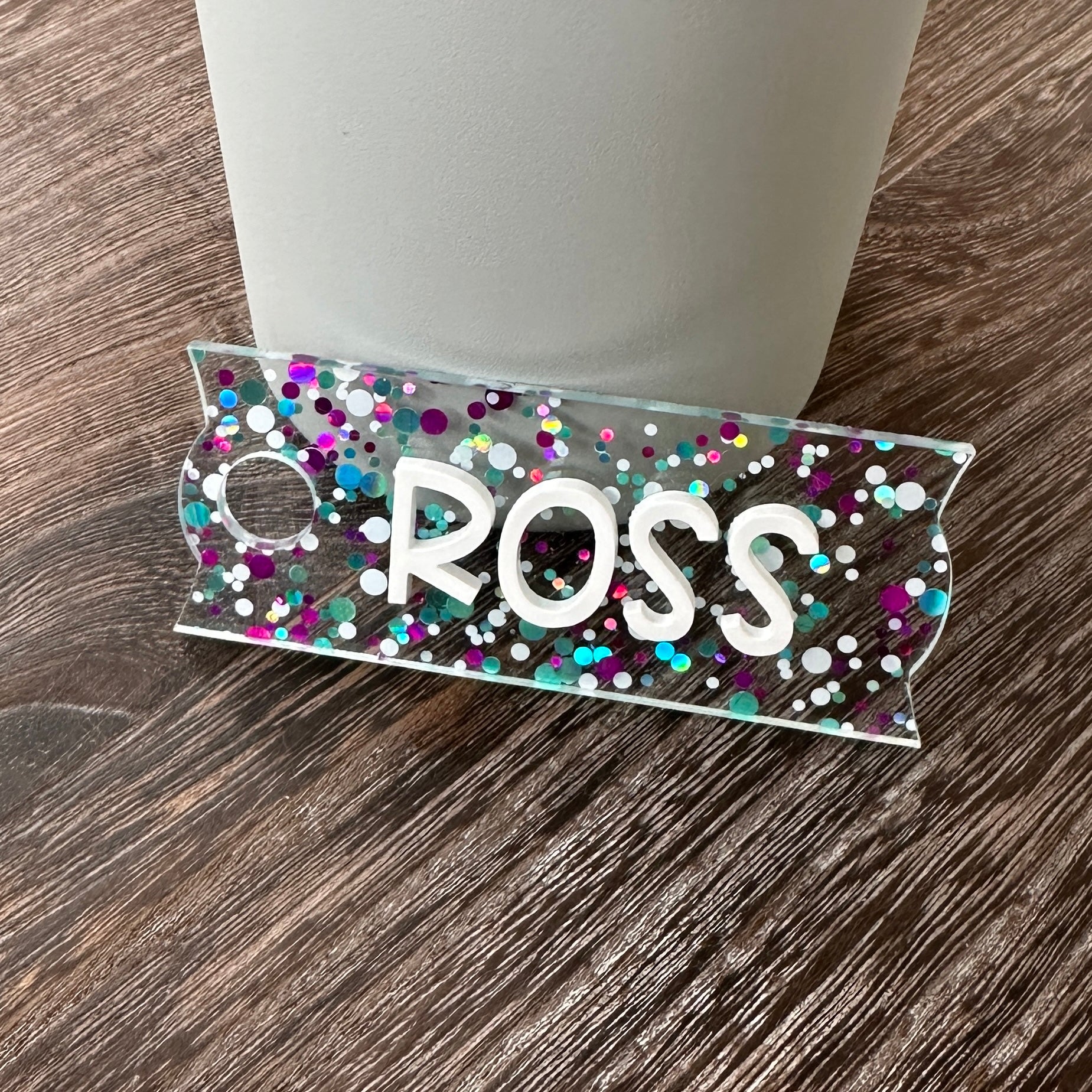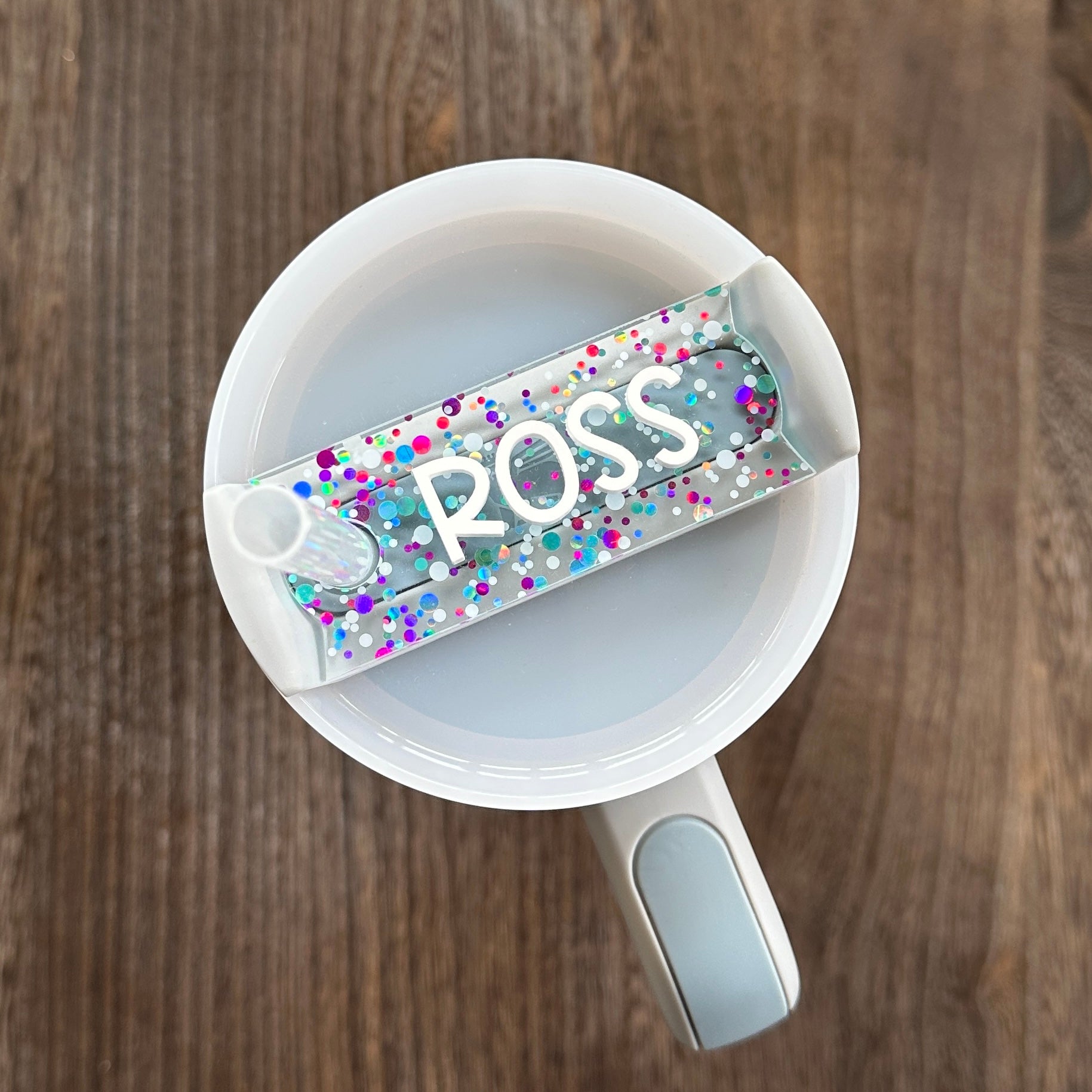 This mermaid-inspired tumbler topper is a magical way to glam up your Stanley Quencher H2.0. The purple, turquoise, and white glitter dots match perfectly with your name engraved in white acrylic! It fits 20oz, 30oz, 40oz, and 64oz tumblers for all your hydration needs. So make a splash with your special style!