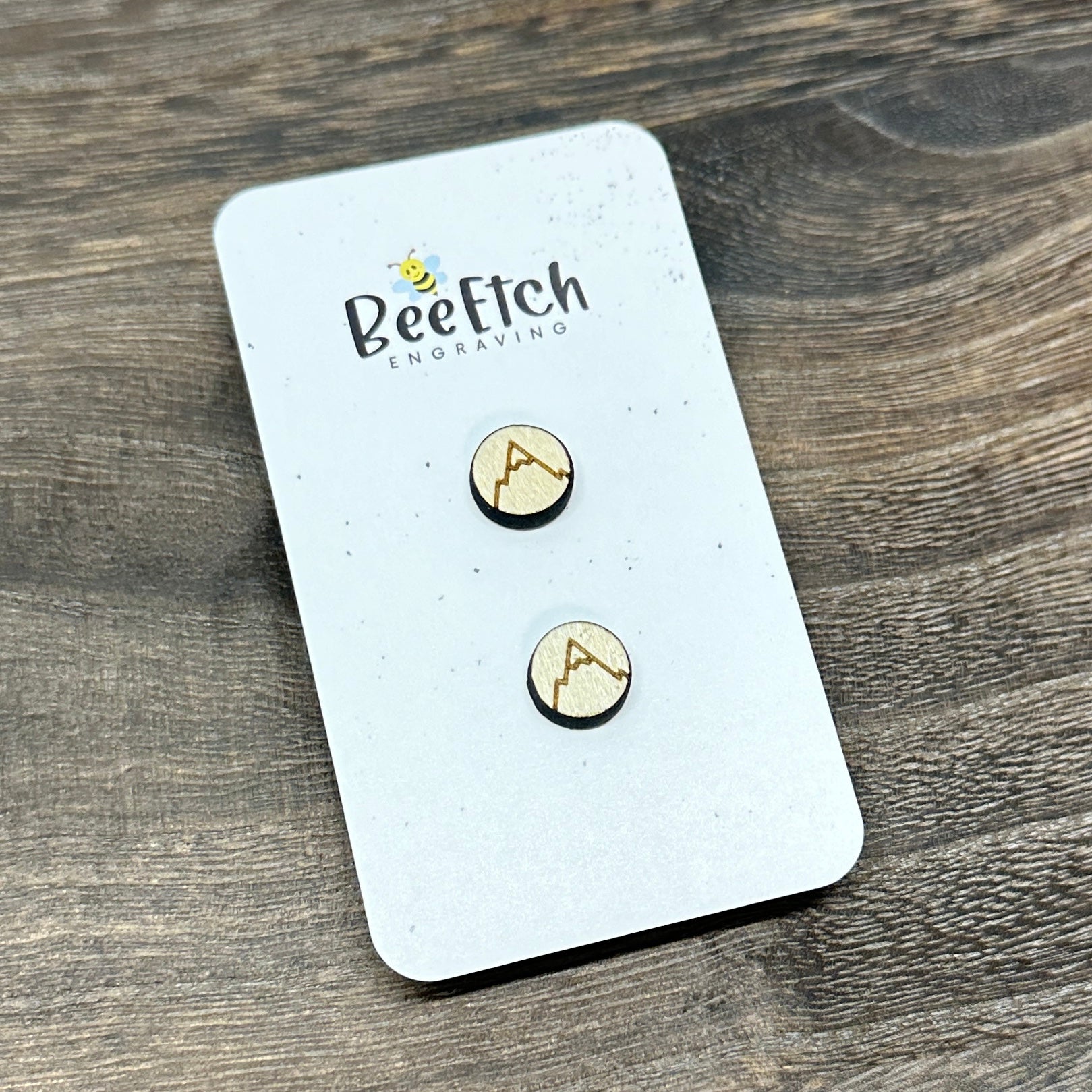 Add a touch of whimsy to your look with these playful Mountain Snow Round Button Stud Wood Statement Earrings. The mini snow-capped mountain design is engraved on white birch, adding a unique element to these button stud earrings. Perfect for any adventurous spirit!