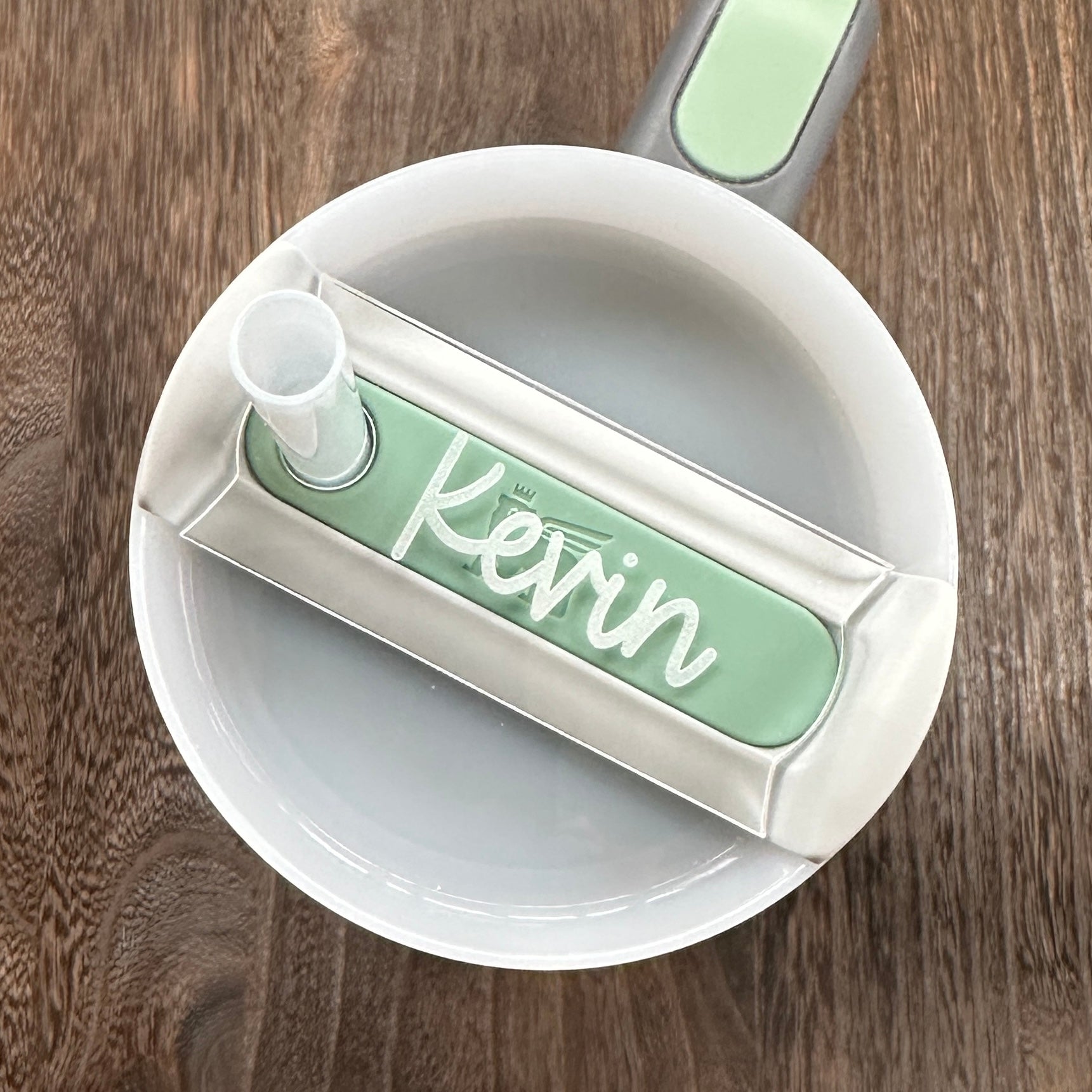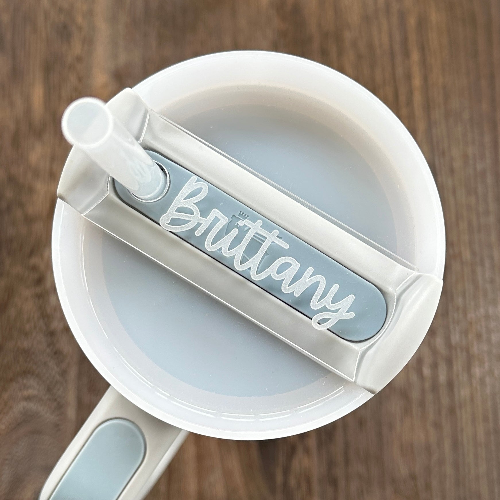 Your tumbler will stand out from the rest in busy spaces with this clear acrylic name engraved tumbler topper. This design's quirky and fun cursive font will compliment any tumbler's look. Compatible with the newest Stanley Quencher H2.0 lids, you'll always know which cup is yours!
