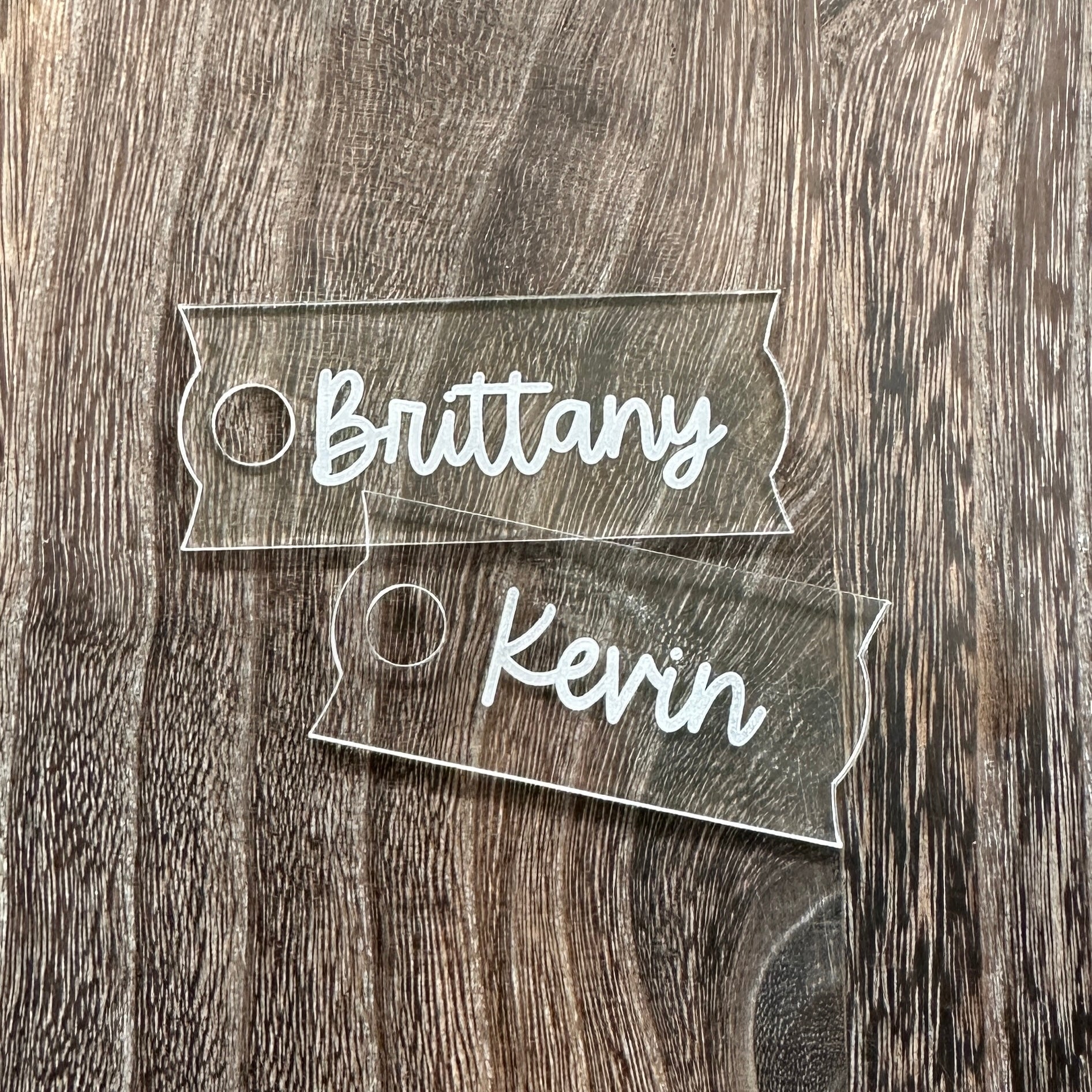 - Laser engraved on clear acrylic