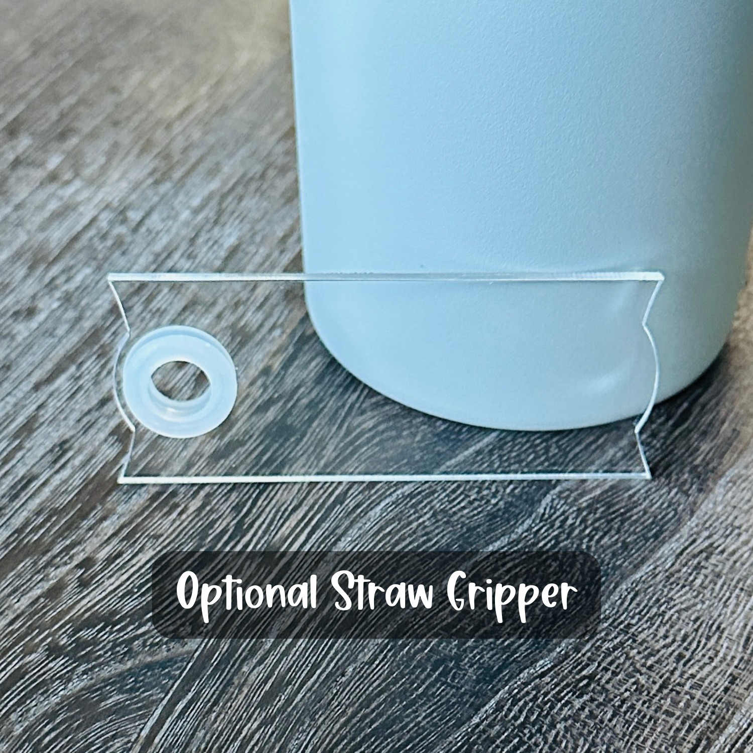Keep your tumbler tag snug with the optional straw gripper. Perfect for rough handling and holds tight all day long.